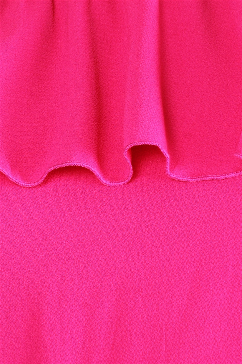 Discover the flattering fit of the plus size Koshibo Off the Shoulder Ruffled top in vibrant fuchsia. Made from a comfortable blend of 97% polyester and 3% spandex, this stylish piece is crafted in Vietnam to offer both elegance and stretch.